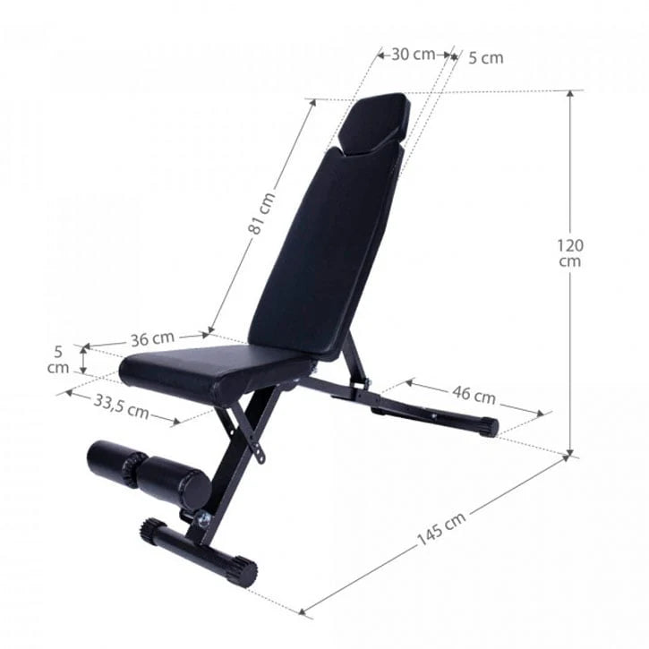 Vægtbænk 200 Sammenklappelig Justerbar – Stabil og sammenklappelig vægtbænk med justerbar ryglæn og sædehøjde, nem at opbevare og perfekt til presøvelser og funktionel træning.