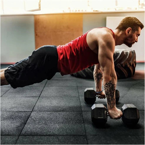 Det skridsikre gulv til dit motionscenter er en del af det grundlæggende udstyr i et motionscenter og beskytter ikke kun gulvet, men beskytter også dine vægte mod at blive ridset og er samtidig lydabsorberende.